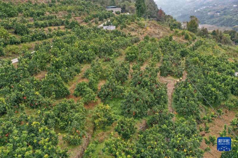 这是11月15日拍摄的巫溪县蒲连镇桐元村蜜柚基地(无人机照片)。新华社记者 黄伟 摄