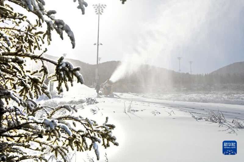 11月15日,造雪机在张家口赛区国家越野滑雪中心进行造雪作业。新华社发(武殿森摄)