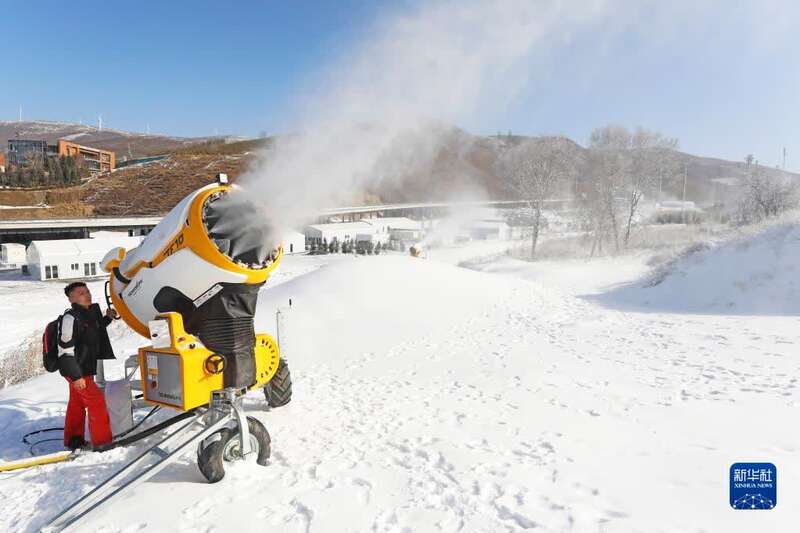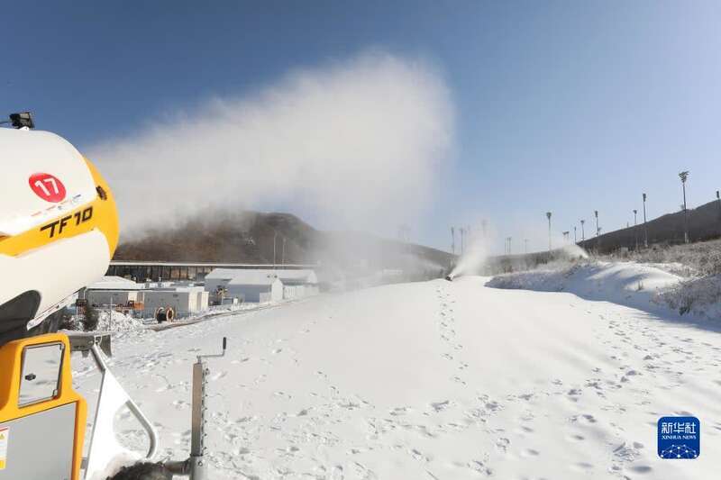 11月15日,工作人员操作造雪机在张家口赛区国家越野滑雪中心进行造雪作业。新华社发(武殿森摄)