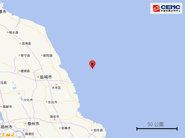 江苏盐城市大丰区海域发生5.0级地震