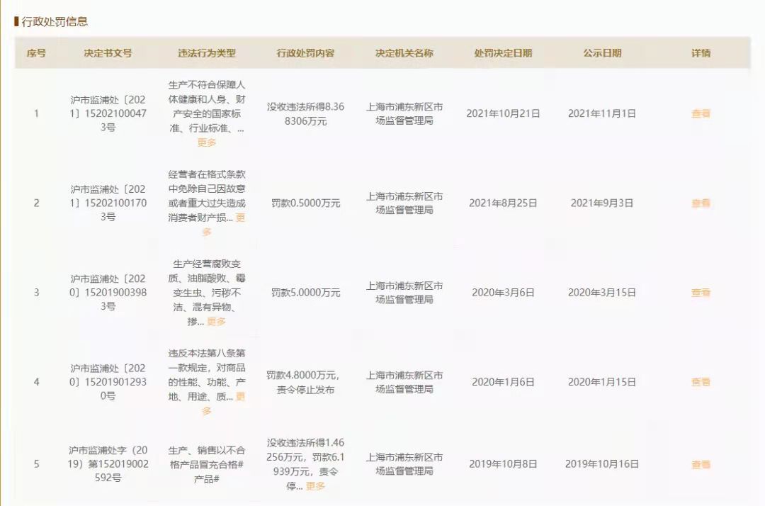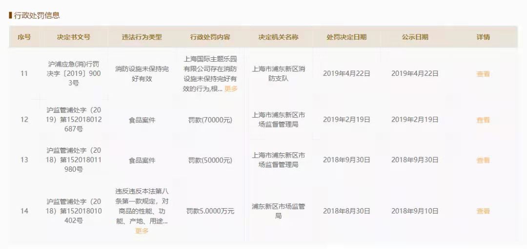 根据国家企业信用信息公示系统公布的行政处罚记录,2018年8月以来,上海国际主题乐园有限公司已经被浦东新区市场监管局作出9次行政处罚决定,今年以来有3次。