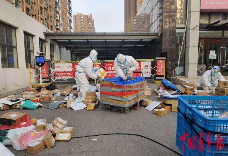 11月15日下午,一辆小货车驶入北京市海淀区新都东路南侧,一家驿站的快递员吕冰打开车后盖,车内大大小小的快递摞得满满当当,这些快递经过分拣、消毒后,将被送入因疫情封控的富力桃园社区。