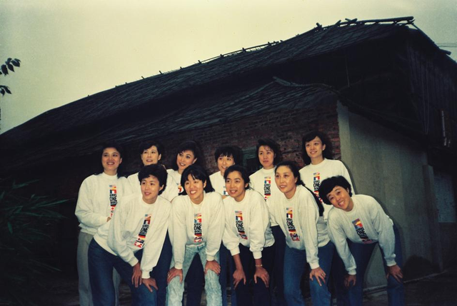 1991年“中国女排首次夺冠十周年纪念”,老女排队员在郴州竹棚训练馆外合影。