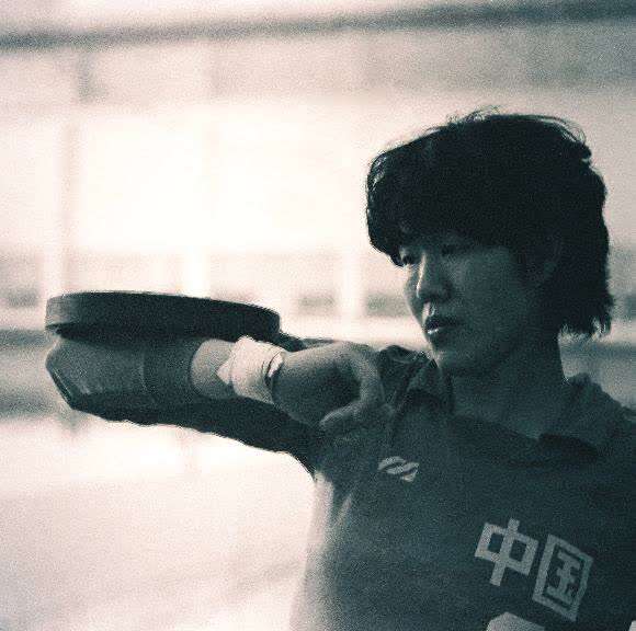 张蓉芳练完滚翻救球又练体能,花背心还穿在身上。