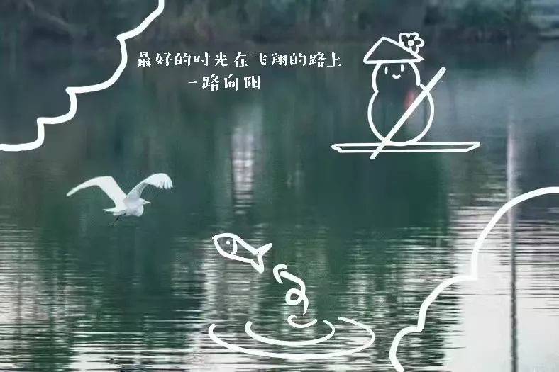 飞过开阔的水面和碧芦