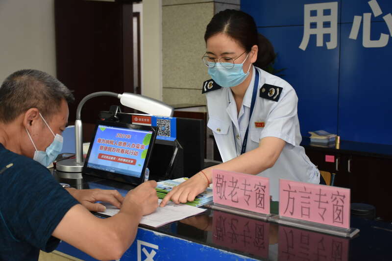 “适老化”服务是针对老年人在办理税务遇到技术方面的困难时,服务厅会安排专人接待,并设立“绿色通道”窗口,由熟悉业务政策的青年干部值守窗口。如果办理业务的老年人不会讲普通话,服务厅也会联系懂得相应方言的税务干部协助服务。