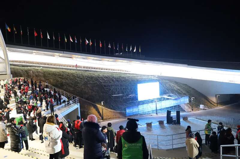 观众入场时进行各项核验手续。国家雪车雪橇中心供图 王世奇/摄