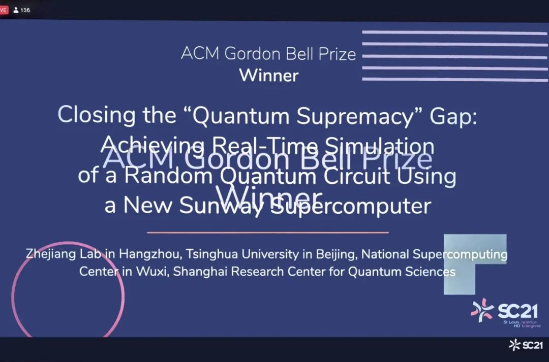 美国时间11月18日下午,2021年度“戈登·贝尔”奖的谜底在密苏里州圣路易斯举行的全球超级计算大会(SC21)上揭晓,中国超算应用团队凭借“超大规模量子随机电路实时模拟”成果(Closing the Quantum Supremacy Gap:Achieving Read-Time Simulation of a Random Quantum Circuit Using a New Sunway Supercomputer ,简称“SWQSIM”)获此殊荣。该团队由来自之江实验室、清华大学、国家超级计算无锡中心、上海量子科学研究中心等机构的14名成员组成。他们分别是来自清华大学及国家超级计算无锡中心的付昊桓、陈德训,之江实验室及国家超级计算无锡中心的刘勇、刘鑫、李芳、杨雨灵、宋佳伟、赵朋朋、王臻、彭达佳、陈华蓉,国家超级计算无锡中心的吴汶钊,上海量子科学研究中心的黄合良、郭楚。其中,刘鑫、付昊桓、郭楚、陈德训为共同通信作者。