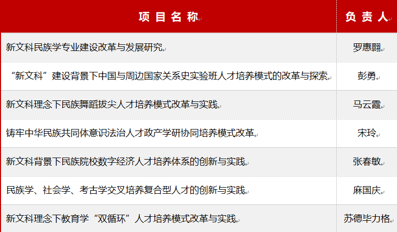 近日,教育部公布首批新文科研究与改革实践项目立项名单,我校“民族学、社会学、考古学交叉培养复合型人才的创新与实践”等7个项目入选。