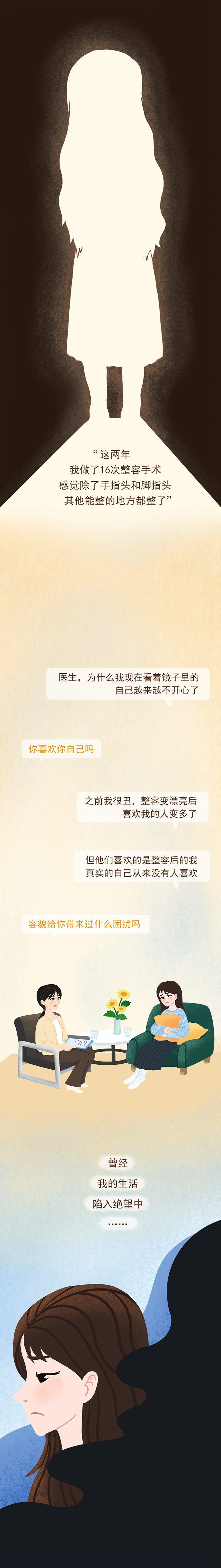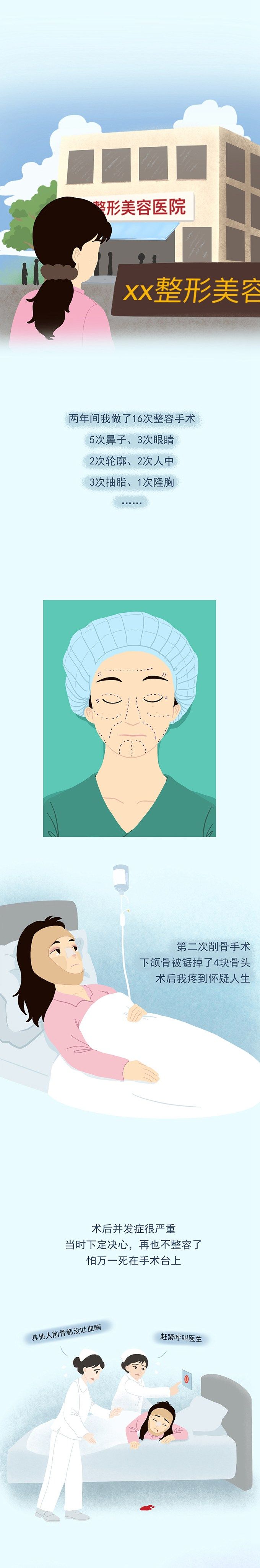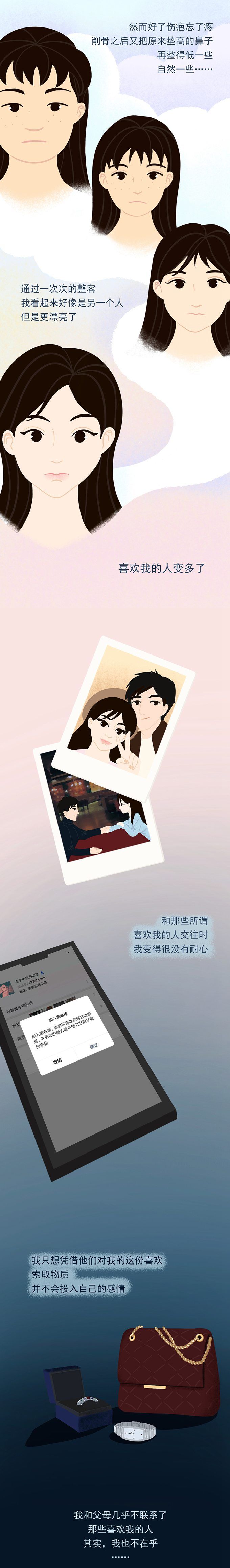 漫画中女主人公的故事来自于记者采访的真实案例。漫画中没有展示的是,多次密集整容之后,她的身体状况已经很差,经常无缘无故地发抖、疼痛,还时不时感冒、荨麻疹复发,每天需要吃大量的药物。