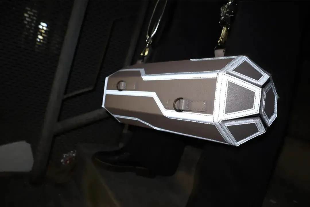 灵感来源于科幻题材中的休眠舱,设计出可用于背挎包和拎包两种背包方式的包袋。休眠舱与迁徙主题相关联,寓意在宇宙中迁徙。营造神秘、酷炫的氛围感。