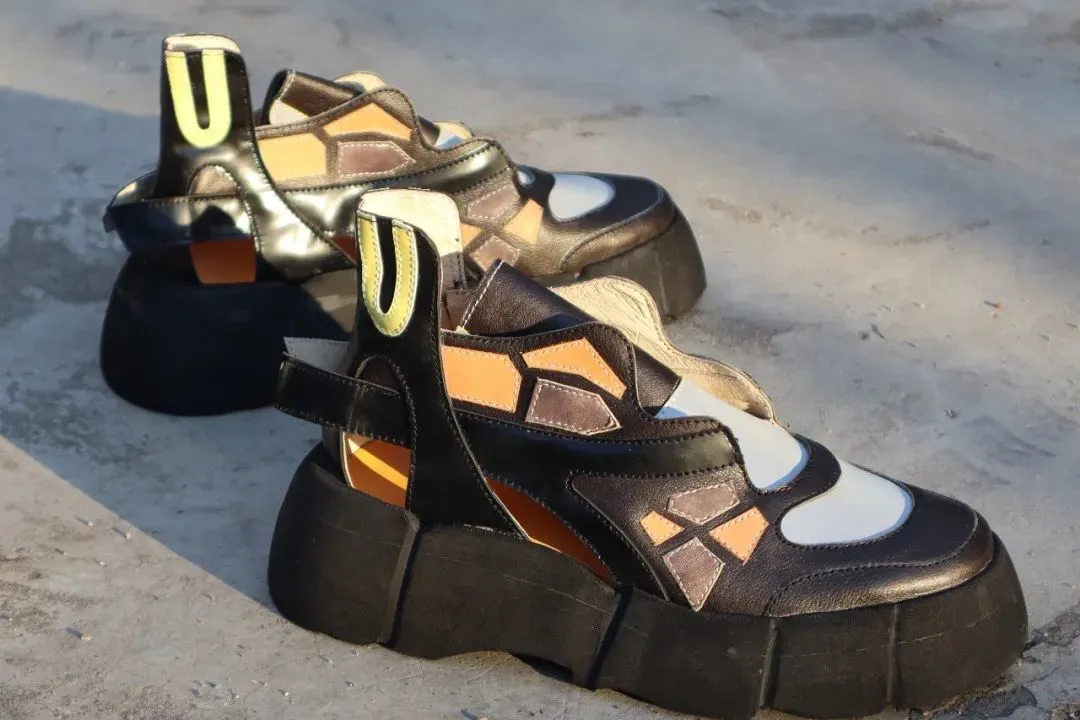 灵感来源于京剧脸谱或山峰的鞋履、