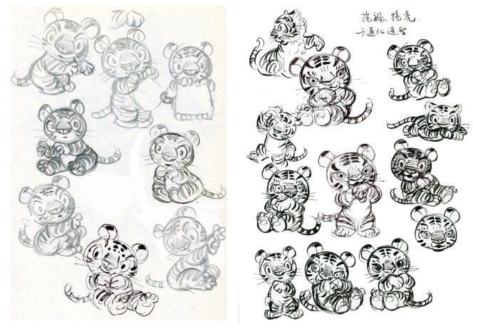 设计团队在大量民间传说故事与各个时期不同国家的虎造型图案、纹样的基础上,经过了20余稿的反复修改与推敲,对瑞虎形象进行了多版的尝试与修改,基于对传统图形的提炼和创新,最终瑞虎形象既有传统神韵同时兼具现代风格。