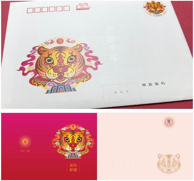 近日,中国邮政发行2022年壬寅虎年贺年有奖明信片《虎啸丰年》。全套包含邮票、信封及新年贺卡,主题为2022年生肖虎,体现年节气氛及虎年吉祥安康,由清华大学美术学院视觉传达设计系教授王红卫与研究生苗慧共同设计。