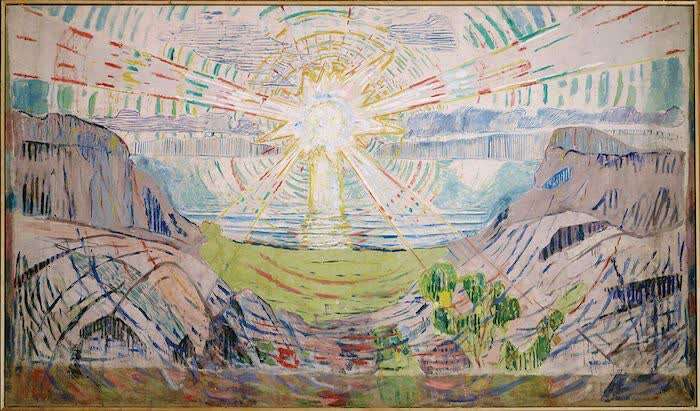 《太阳》(1910——1911)是蒙克最初为奥斯陆大学礼堂百年创作的两幅不朽油画之一 蒙克博物馆提供