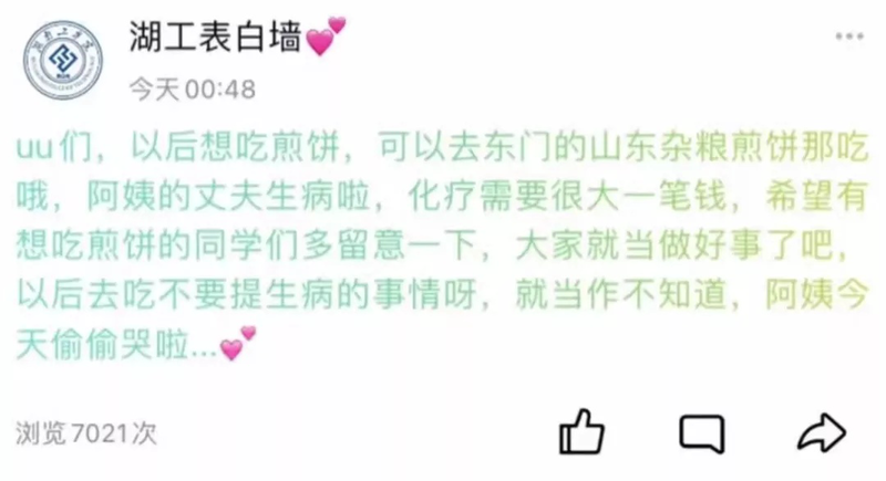 有学生把这一消息发到了校园表白墙上