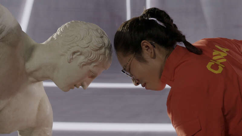 全运铁饼冠军冯彬与《掷铁饼者》展开时空对话。节目组供图