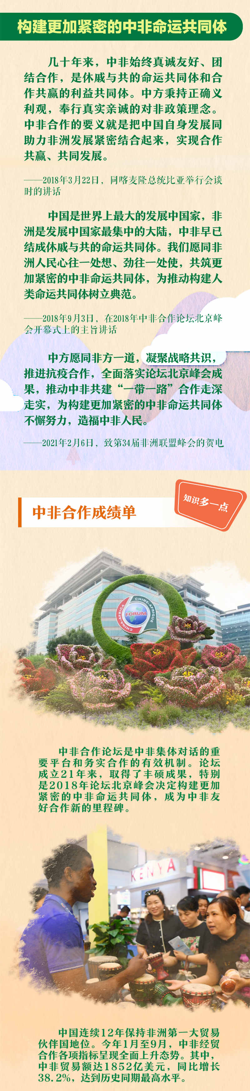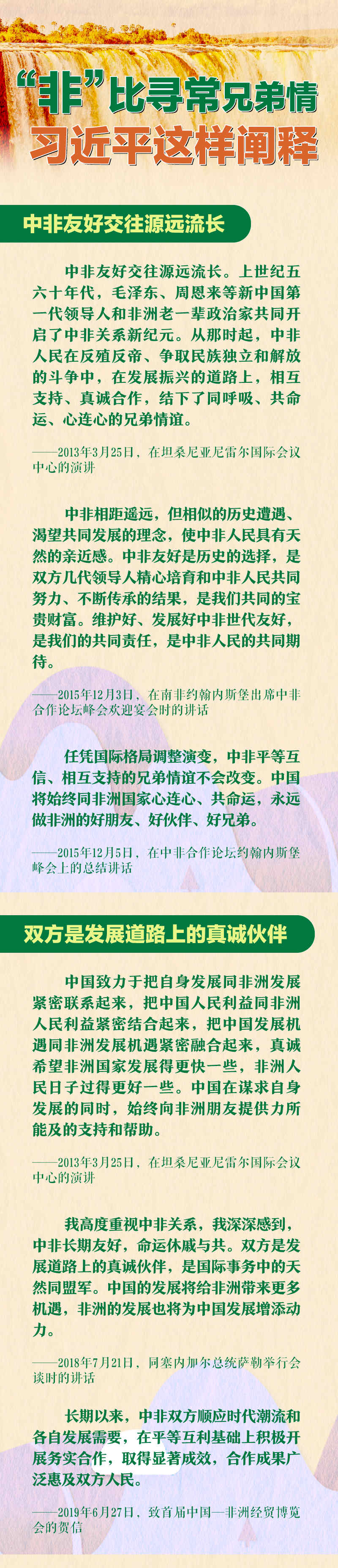 发展同非洲国家的团结合作是中国对外政策的重要基石,也是中国长期坚定的战略选择。习近平主席曾说:“中非关系不是一天就发展起来的,更不是什么人赐予的,而是我们双方风雨同舟、患难与共,一步一个脚印走出来的。”