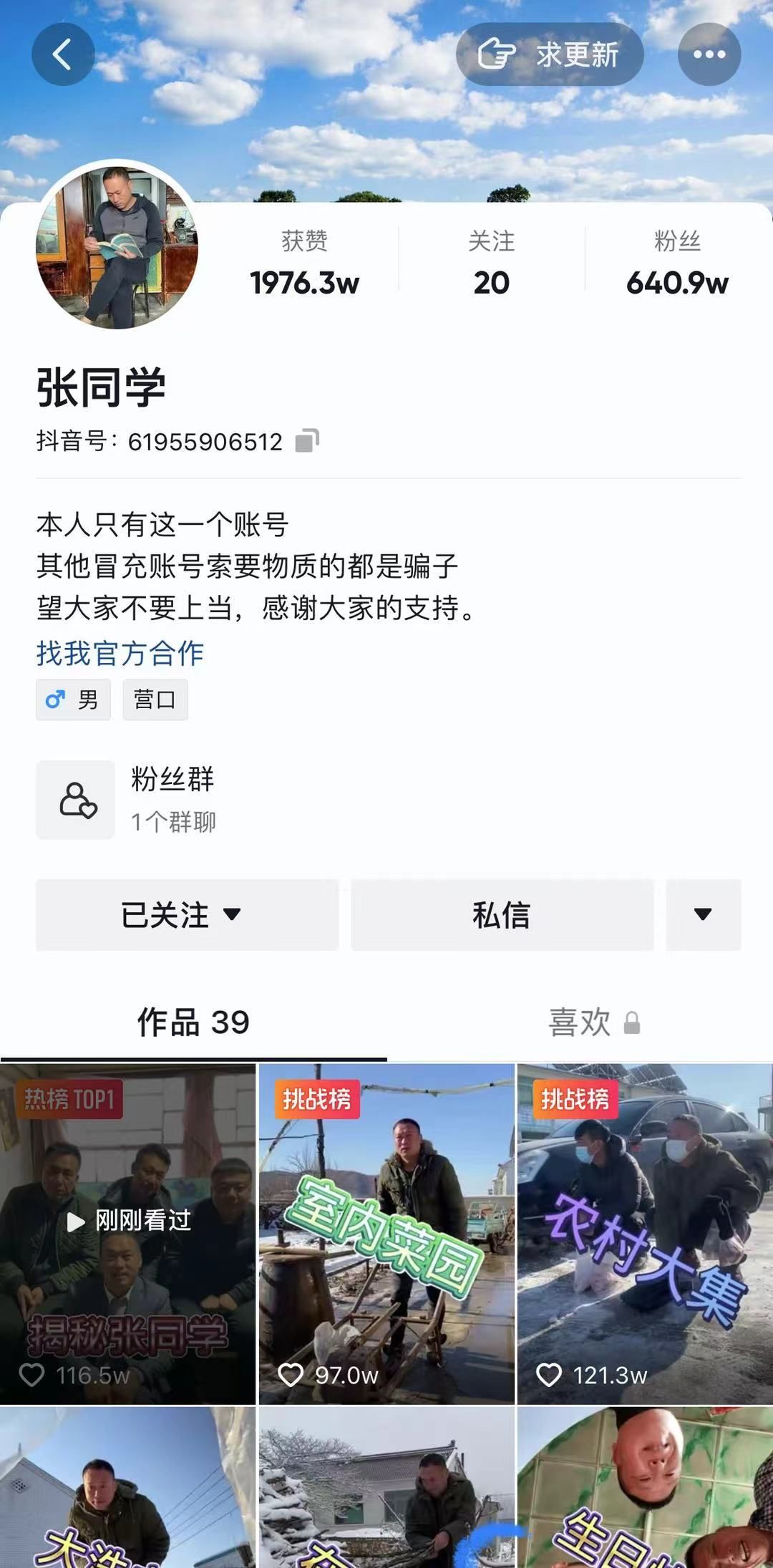 “张同学”在视频中表示,其实自己也就是一个普普通通地地道道的农村人,平时拍一些山山水水,家乡的一些人土风情,家乡的一些美食,想通过这种短视频的方式让更多的人认识和了解,也没有什么其他的。