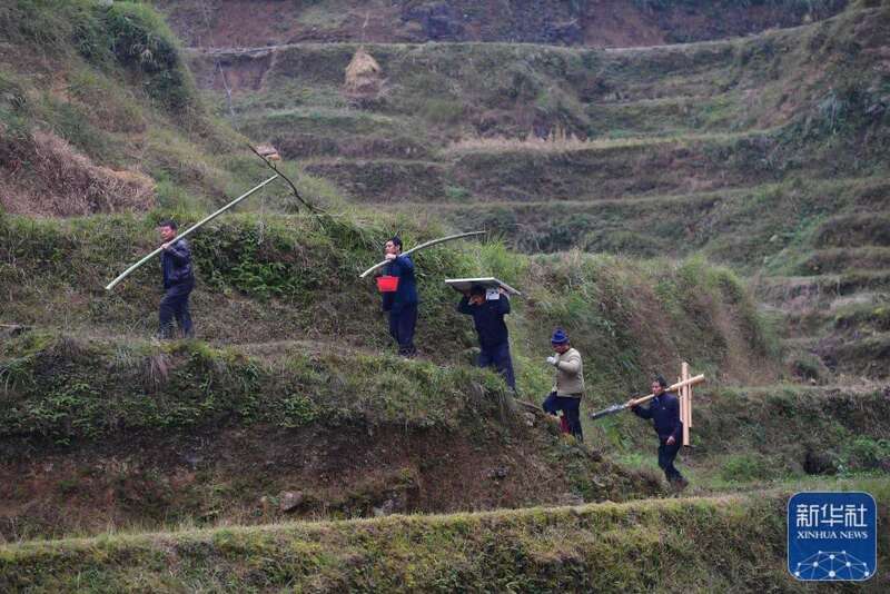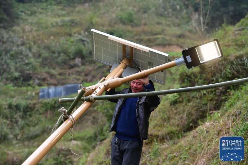 广西融水苗族自治县杆洞乡党鸠村村民准备安装太阳能路灯(2020年12月7日摄)。