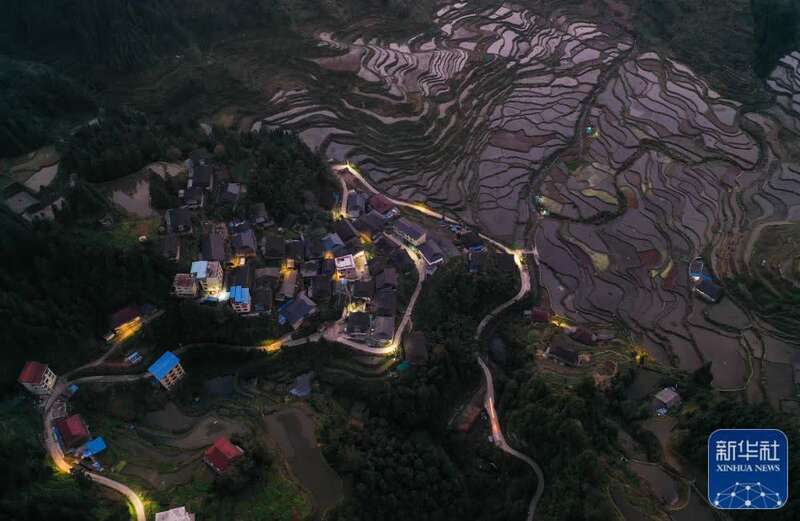 这是广西融水苗族自治县杆洞乡党鸠村夜景(无人机照片,11月26日摄)。