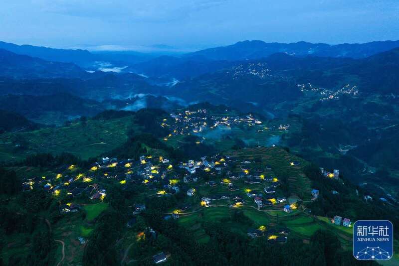 这是广西融水苗族自治县杆洞乡杆洞村和百秀村的夜景(无人机照片,8月27日摄)。