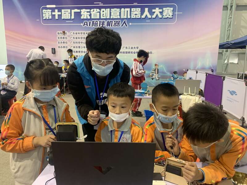 本次大赛是广东科学中心与广东省科技馆研究会联合举办的一项面向中小学生的全省性竞赛活动。“AI陪伴机器人”是本届大赛的主题,依据人工智能技术在日常生活的应用需求,参赛学生创设出老人、儿童等人群缺乏陪伴的场景,并制造满足陪伴需求的机器人。