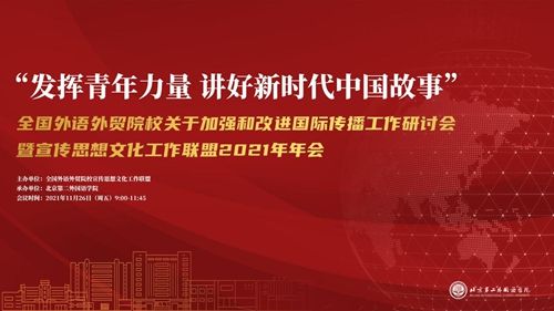 中国青年网北京11月28日电(记者 乔佳新 通讯员 于珊珊)11月26日,“发挥青年力量 讲好新时代中国故事”全国外语外贸院校关于加强和改进国际传播工作研讨会暨宣传思想文化工作联盟2021年年会通过线上形式召开。本届年会以“发挥青年力量 讲好新时代中国故事”为主题,由全国外语外贸院校宣传思想文化工作联盟主办、北京第二外国语学院承办。