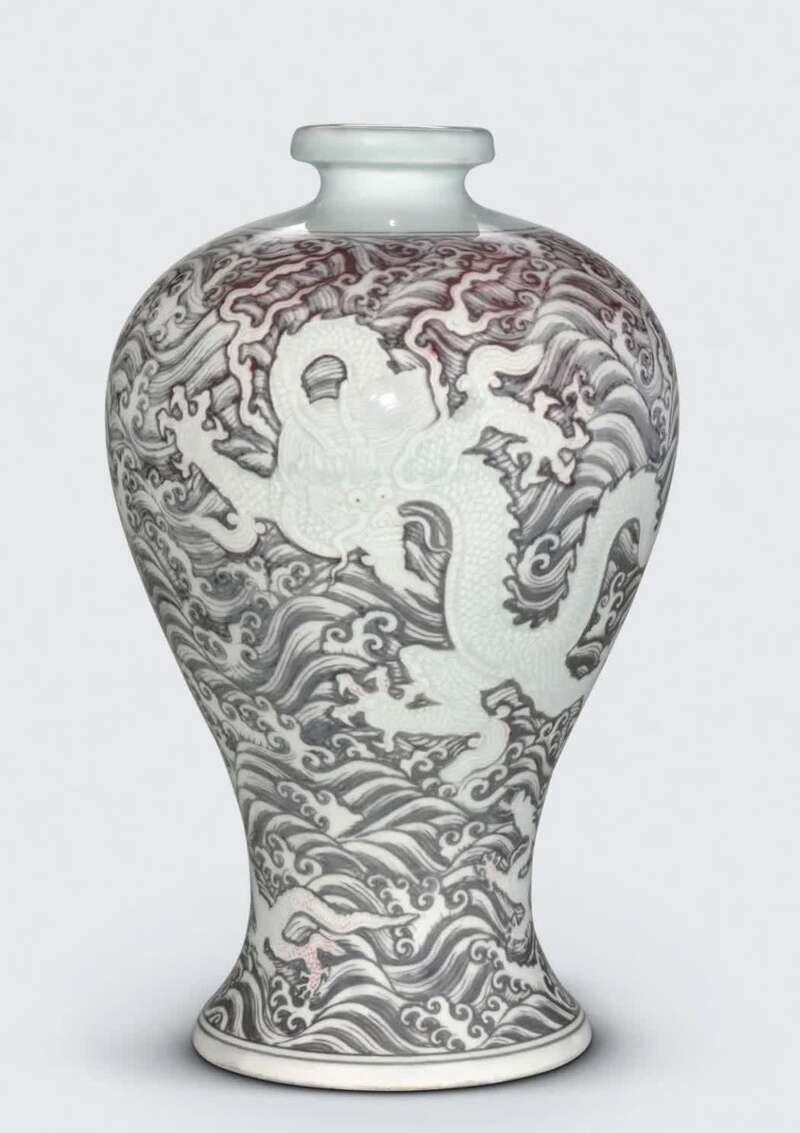 明永乐 釉里红海水锥拱苍龙教子图大梅瓶