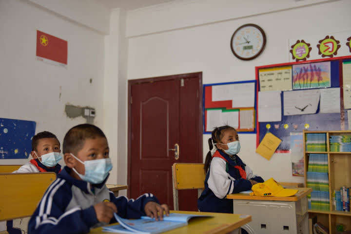学生在楚鲁松杰乡教学点的教室里上课(2021年9月19日摄)。新华社记者 格桑朗杰 摄