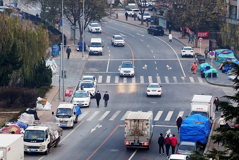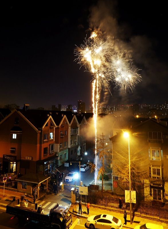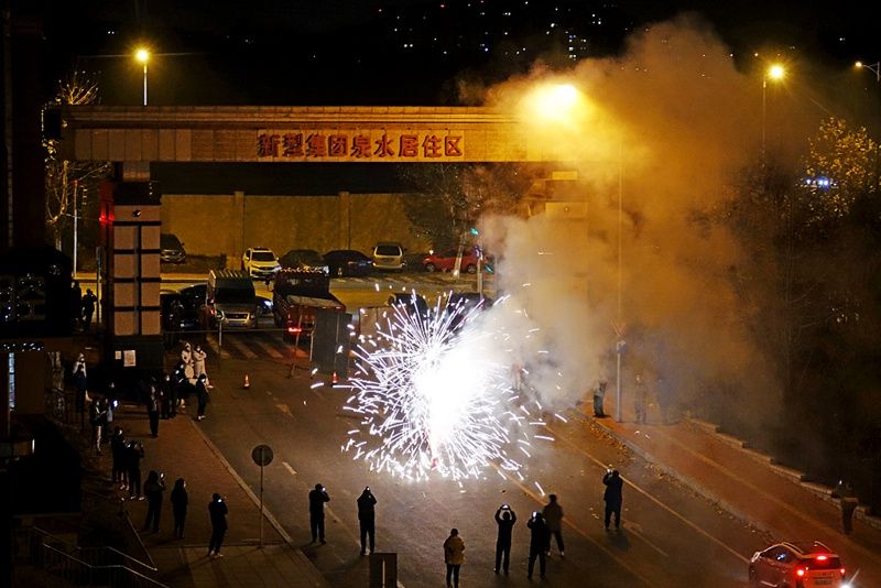 2021年11月28日夜,大连市甘井子区泉水街道龙鑫社区居民燃放焰花庆祝解封。