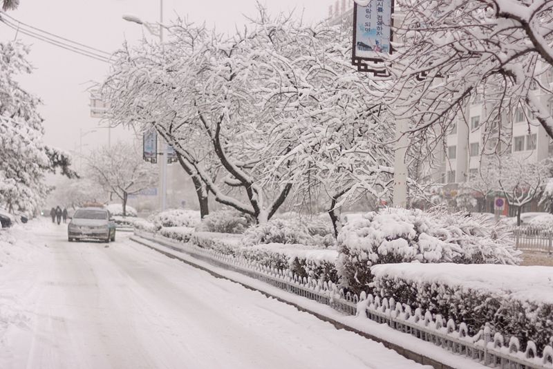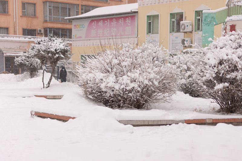 2021年11月30日,吉林省延边朝鲜族自治州延吉市暴雪来袭。