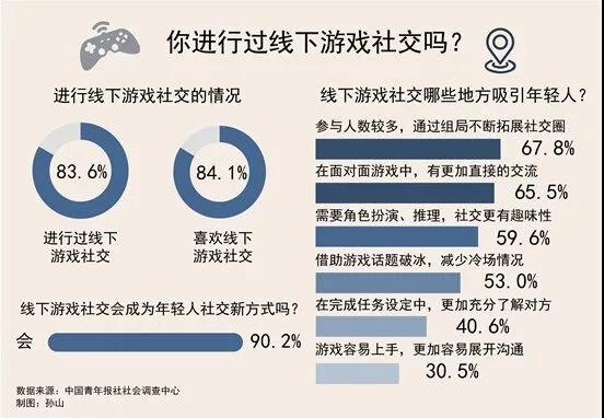 当一种对原有关系亲近度要求不高、好上手、易投入情绪使人感到身临其境的游戏摆在眼前时,促使人们交谈的因子便多了起来,这也是线下游戏社交一炮而红的魅力之一。