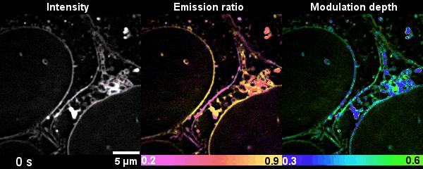 相比于现有的其他荧光成像技术,这次自主研发的SPOT技术利用六张原始图像即可获得荧光强度、光谱和偏振多个维度信息,成像速度快,可实时观测亚细胞器的动态变化。该技术良好的光学层切能力同时提高了偏振探测精度和光谱探测精度,首次利用光学成像技术得到亚细胞器内部的脂质异质性动态,对脂质极性和位相进行量化观察。