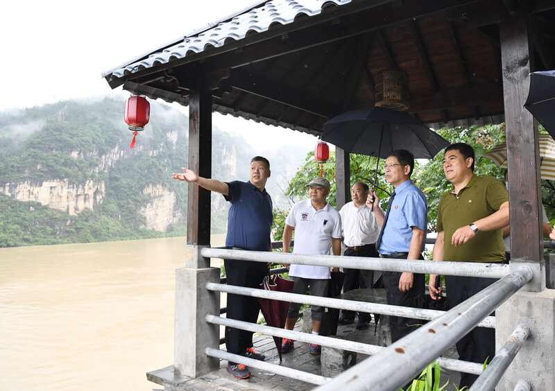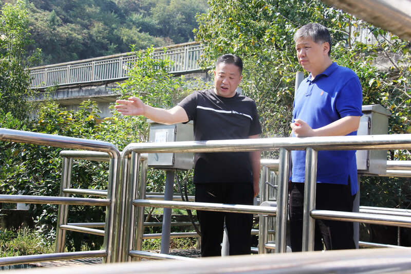 2019年9月28日,王朝阳(图右)赴建始县马栏溪对水污染公益诉讼案件线索现场查看督办。湖北省人民检察院供图