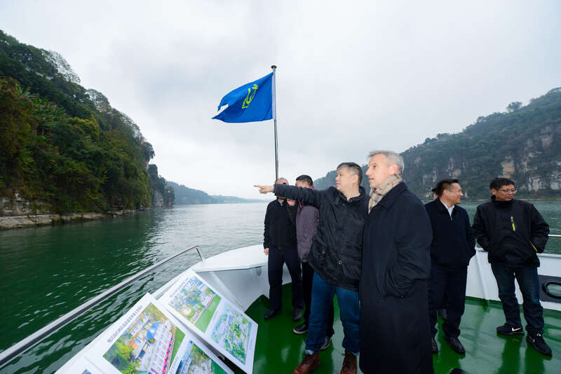 2020年11月23日,最高检、欧洲环保协会来宜昌调研长江大保护 ,王朝阳(左三)介绍相关情况。湖北省人民检察院供图