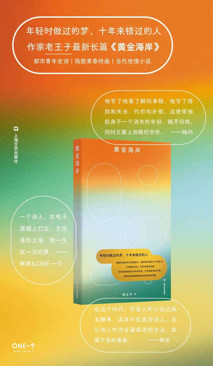 老王子因发表于《独唱团》的短篇小说《合唱》被读者熟悉。之所以笔名取做“老王子”,只因偷懒,年纪渐长后就在原名“王梓”前,加了一个“老”字。已出版短篇小说集《合唱》《鸟藏》,长篇小说《上海滩的贾斯汀•比伯》。近日,老王子的新书《黄金海岸》由上海文艺出版社出版,他将自己的亲身经历和对生活的体验感悟融入进了《黄金海岸》,追忆了一代沪漂文学青年曾经的“黄金时代”。