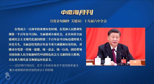 这个月,中国共产党第十九届中央委员会第六次全体会议(以下简称十九届六中全会)在京召开,习近平总书记作重要讲话。全会审议通过了《中共中央关于党的百年奋斗重大成就和历史经验的决议》,《决议》总结了党团结带领人民群众百年奋斗的重大历史成就,凝聚起向第二个百年奋斗目标奋进的强大力量。
