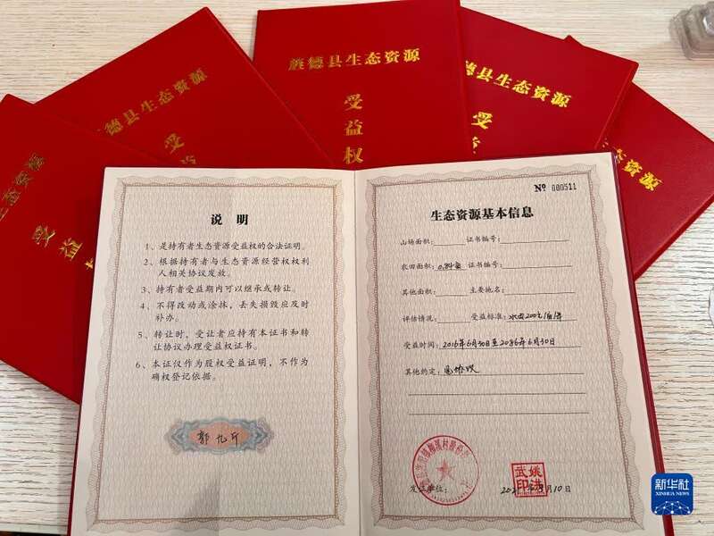 农民们“存”入闲田、林地等,拿到《旌德县生态资源受益权证》作为“存折”。(新华社记者 马姝瑞 摄)