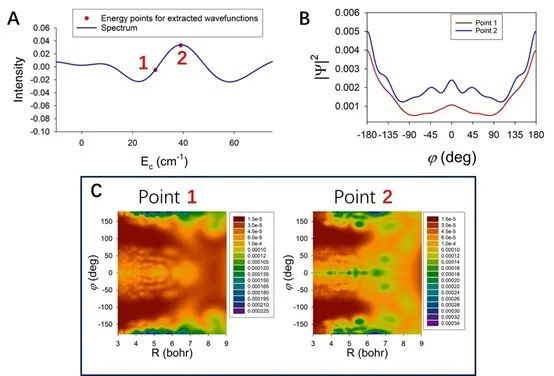 针对这一非常新颖和特殊的实验现象,理论方面谢长建结合准经典轨迹和量子动力学方法展开了研究。从经典轨线中分析“漫游”反应动力学特征,并通过量子波包动力学计算证实了反应的量子特性,阐释了实验上所观测到的“漫游”机理增强是由轨道共振引起量子效应现象。