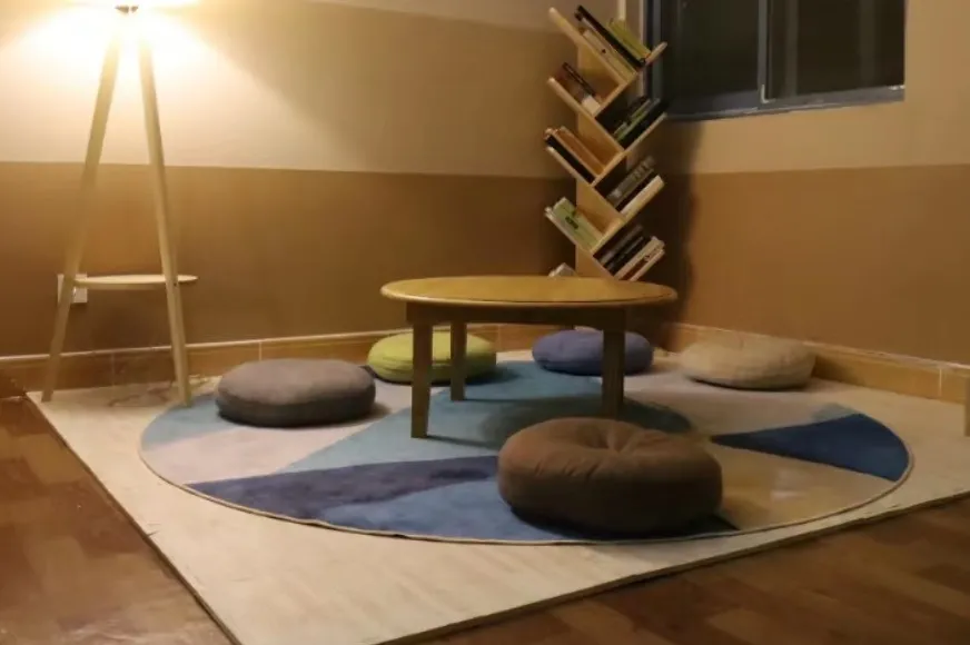 撞色地毯、丫杈状的书架、落地灯暖黄的光落在卡其色墙纸上......踏进402寝室,第一反应是误入了家装店的展厅。这样温馨浪漫的环境,是寝室里12位男生协力奋斗一个多月的成果。