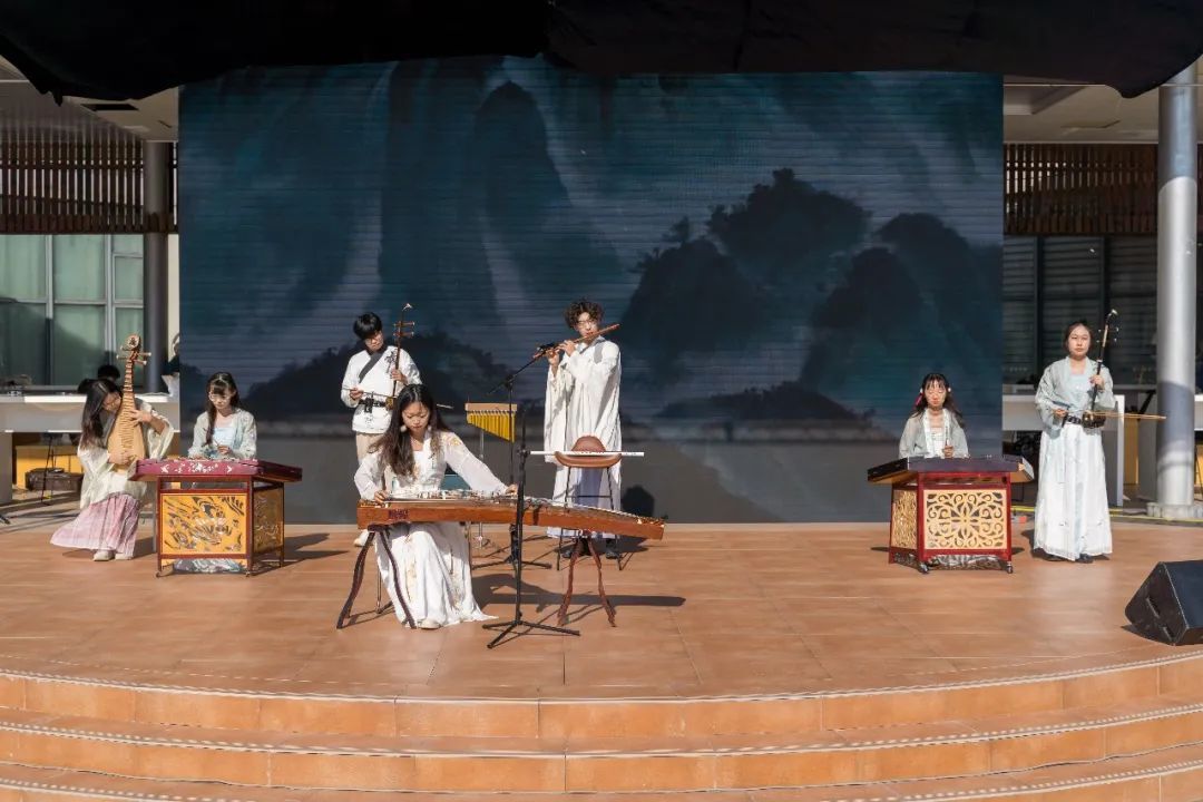 校大学生民乐团为大家演奏了民乐合奏《山语·幻》。悠扬的旋律展现出民乐的传承与发展,启迪观众探寻民乐之美,也让大家感受到了华理青年朝气蓬勃的青春风貌。