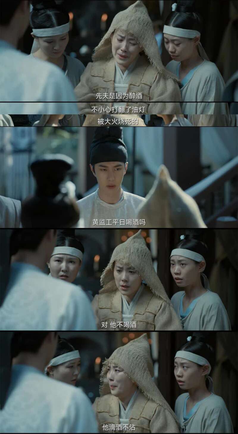 就比如为调查父亲被毒杀真相,百里弘毅去了婚礼当天未到现场的工部监工黄安家,发现黄安三天之前去世了,原因是醉酒打翻油灯被烧死。百里弘毅说服黄家人开棺验尸,理由是黄安平日不喝酒,因为监工时不能酗酒。他夫人这时才大梦初醒:他滴酒不沾……类似的桥段,很显然是为了让情节推进下去,大概编一个,有点太随意了。