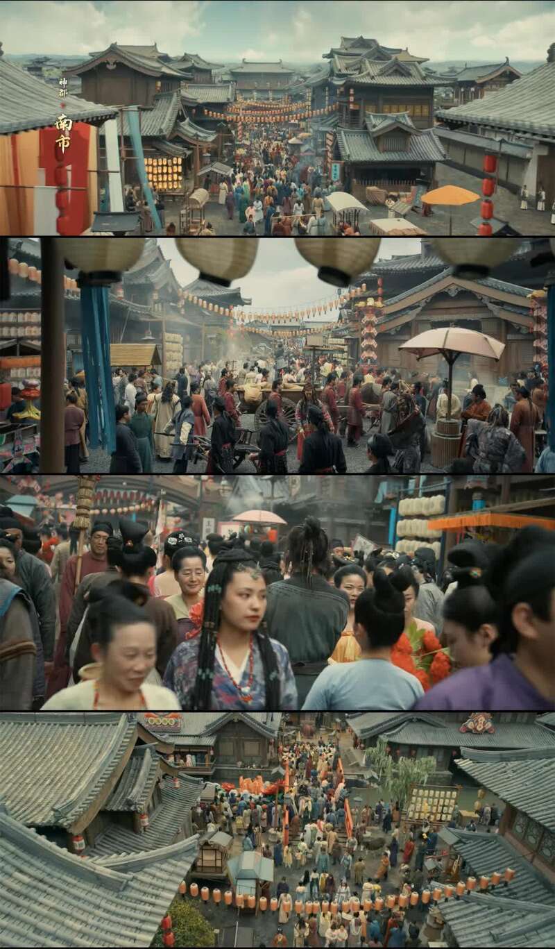 剧方也的确大手笔地还原了一个古代国际大都市该有的气度:充满唐朝风韵的建筑,华灯满街,万国来朝,商贾汇集,人声鼎沸,摩拳擦掌,多种多样的行当、各种奇珍异宝让人目不暇接……