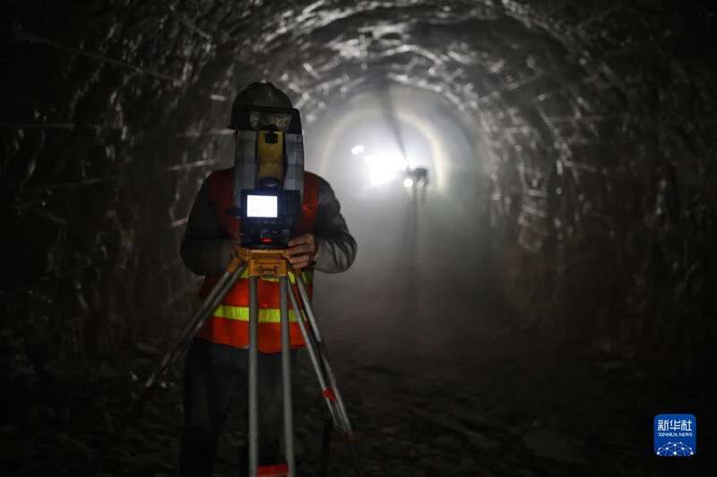 12月5日,工作人员在九万大山一号隧道平行导洞内调试设备。