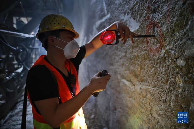 12月5日,工作人员在九万大山一号隧道平行导洞内检查洞壁。