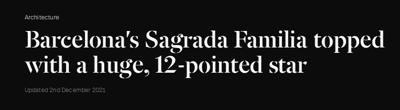 (观察者网讯)据美国有线电视新闻网(CNN)12月2日报道,西班牙的地标性建筑,巴塞罗那的神圣家族大教堂的塔楼顶部被安装上了一颗巨大的12角星。