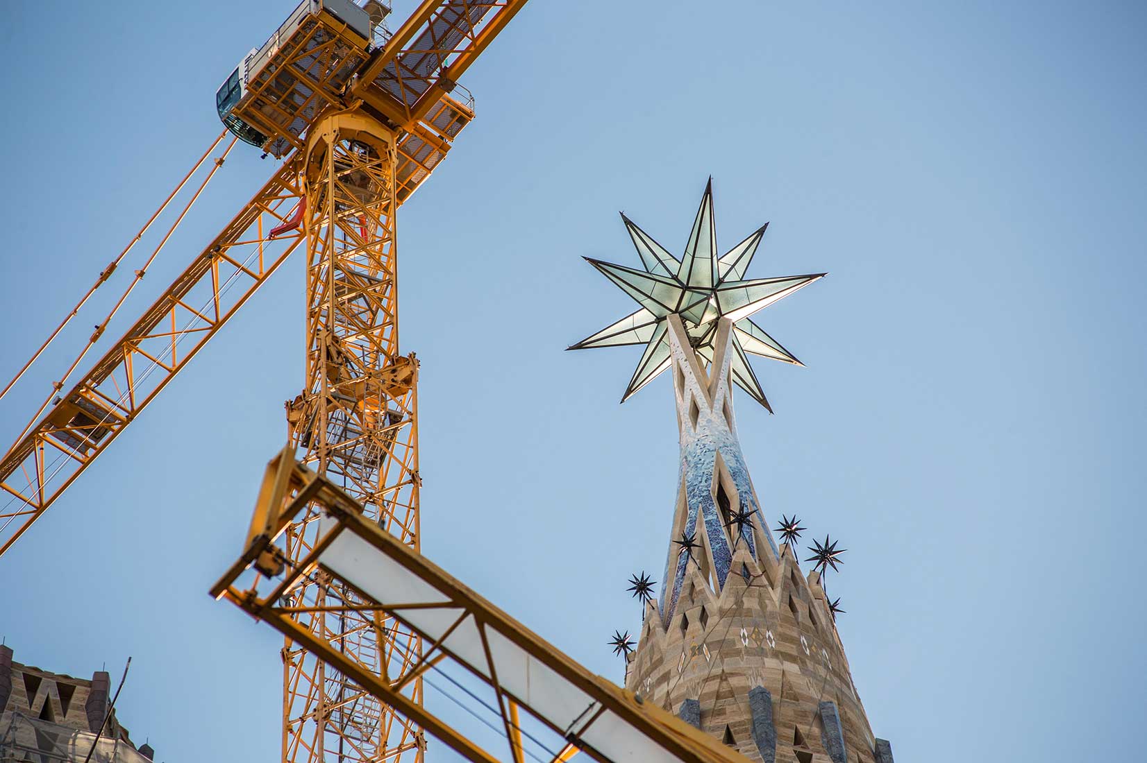 一颗十二角星被安装在神圣家族大教堂塔楼顶端,图源:ICphoto