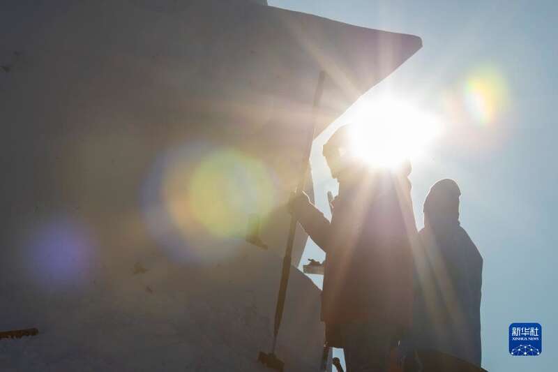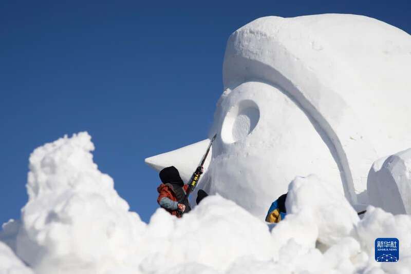 12月6日,在哈尔滨市松北区,工人在进行雪雕制作。新华社记者 谢剑飞 摄