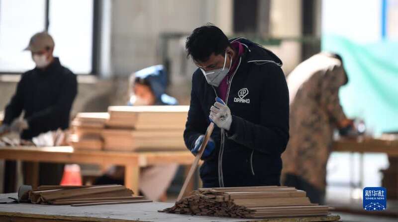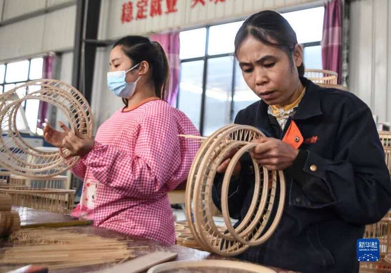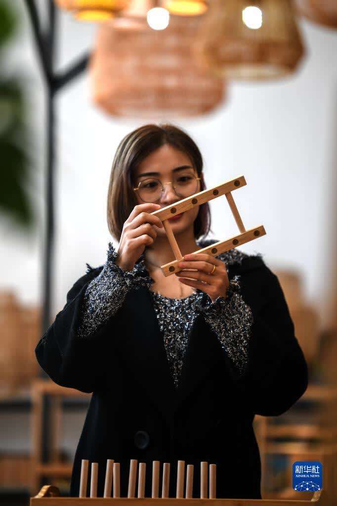 12月6日,融安县一家工艺品厂的工作人员在组装竹木小饰品。